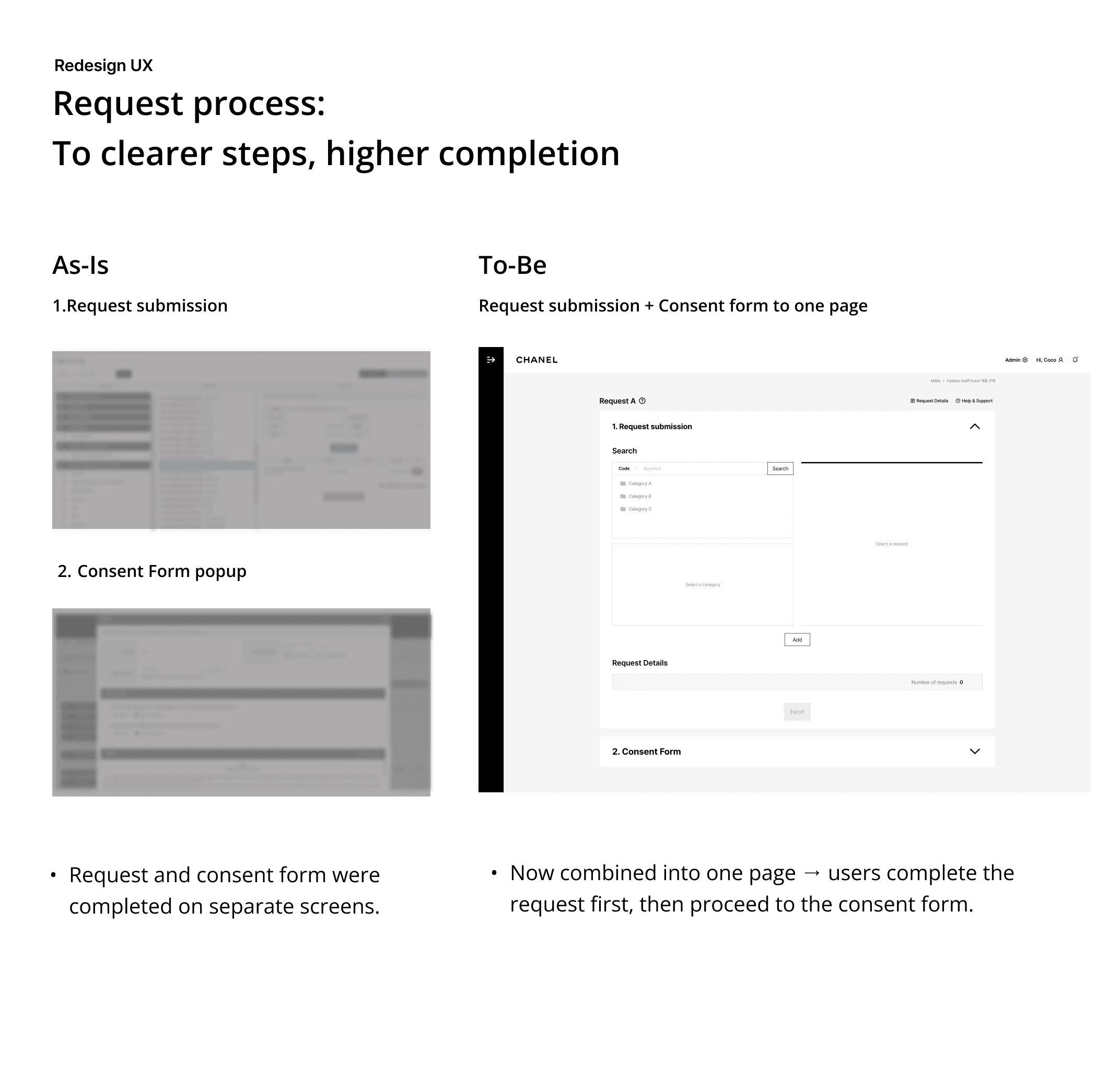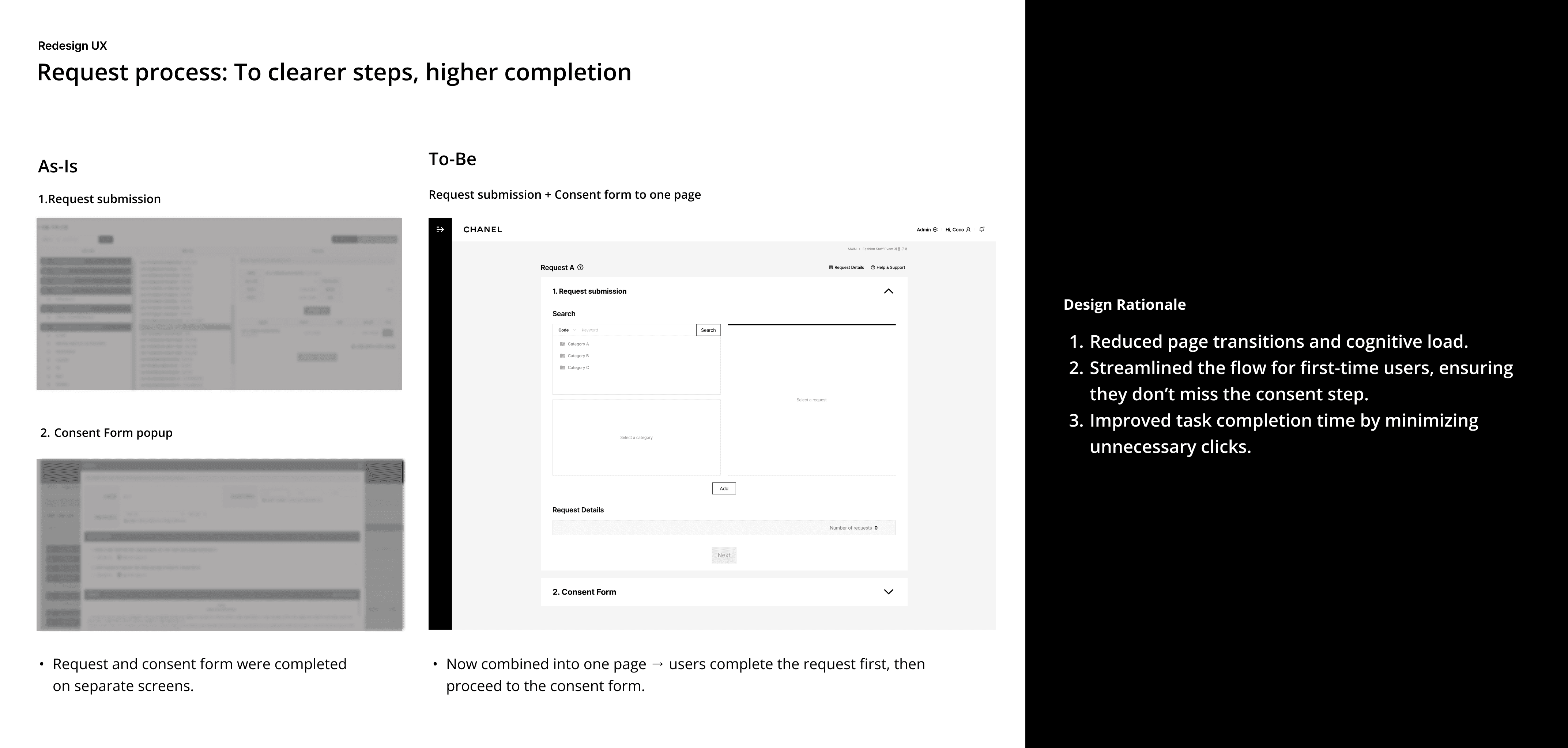 A system migration paved the way for UX transformation—redesigned CHANEL internal system to streamline workflows and reduce task time by 16.3%.