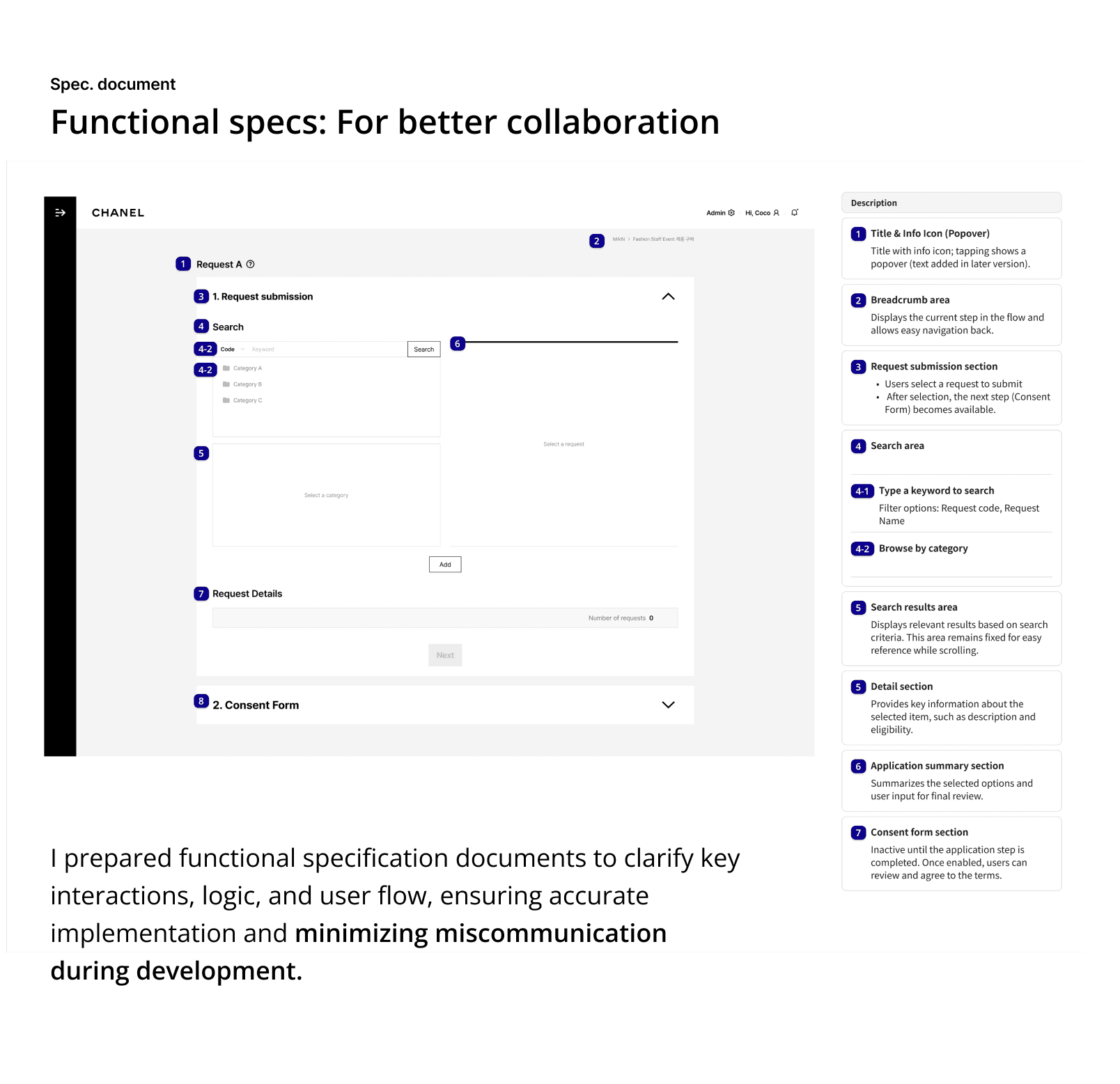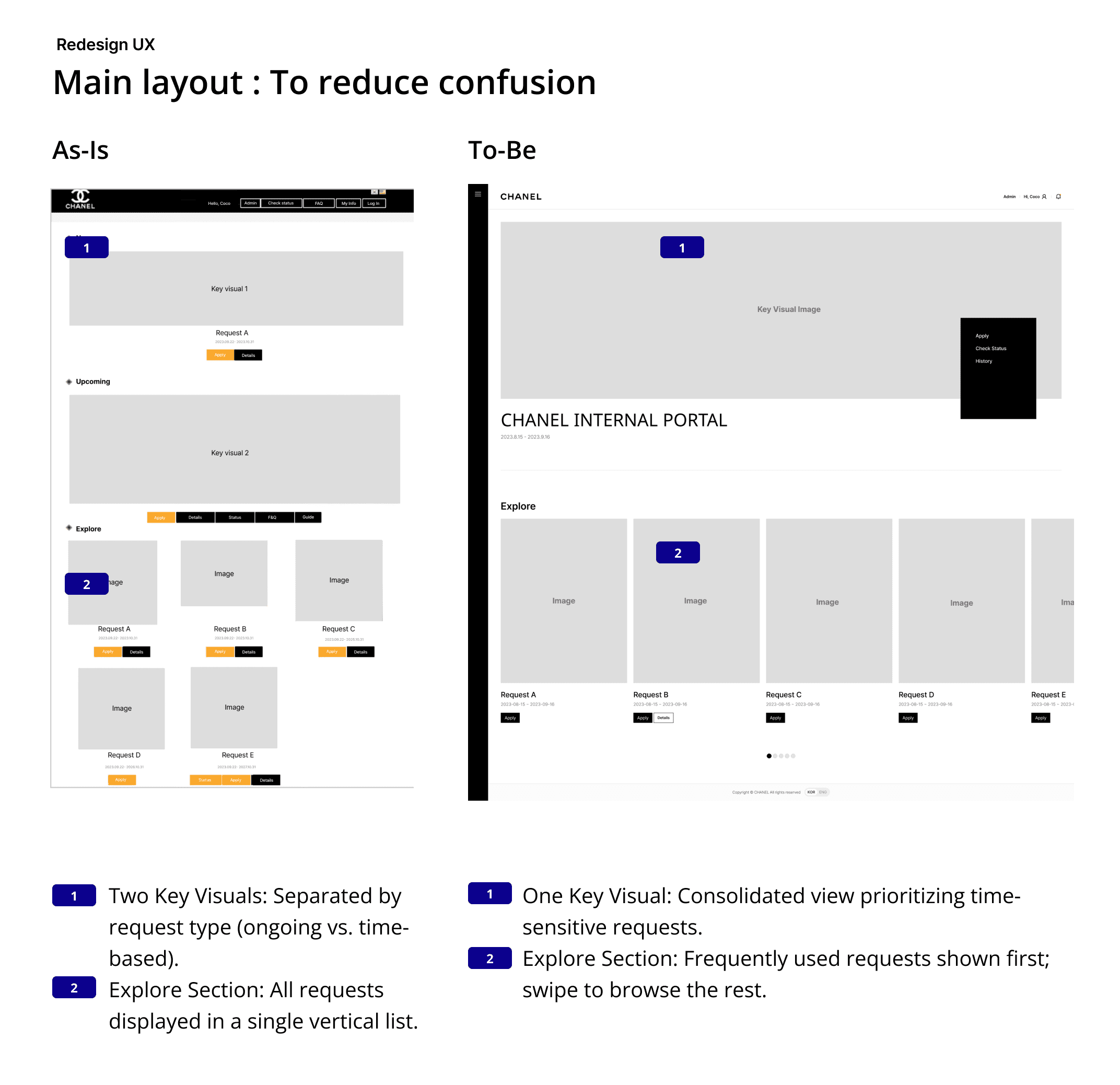 CHANEL’s internal platform, used by sales and internal teams, had become outdated and difficult to use—especially on tablets, which were the primary device in the field. During the transition from PHP to Java, the team saw an opportunity to improve usability while preserving the familiar user flows that employees relied on.