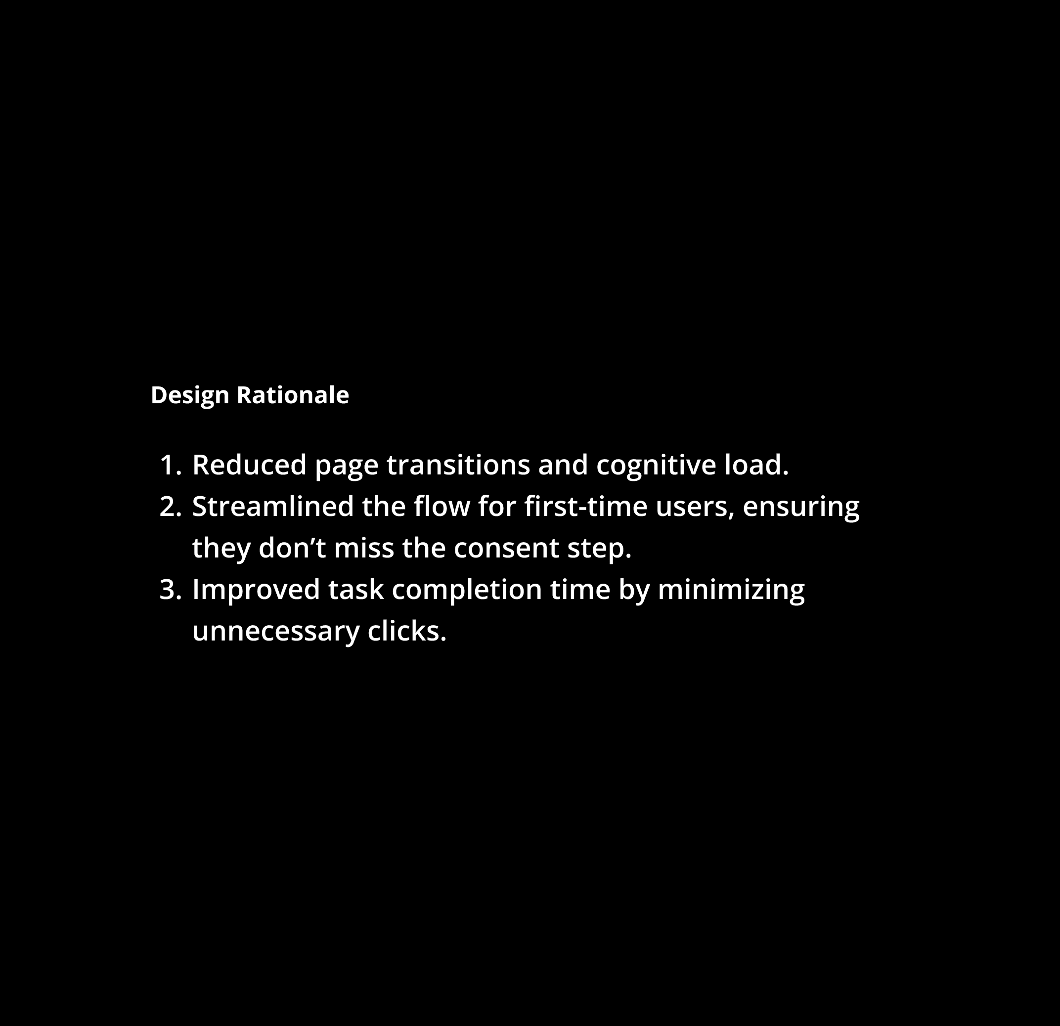 Merged request and consent steps into a single page to reduce cognitive load and speed up completion.