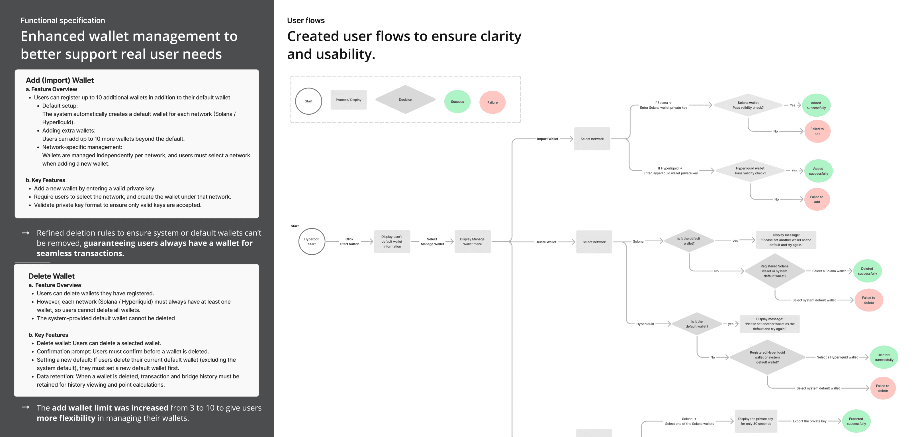 Partnered with product and engineering to define user stories, edge cases, and system behaviors. Designed conversational flows for bot interactions that guided users through complex trading actions.