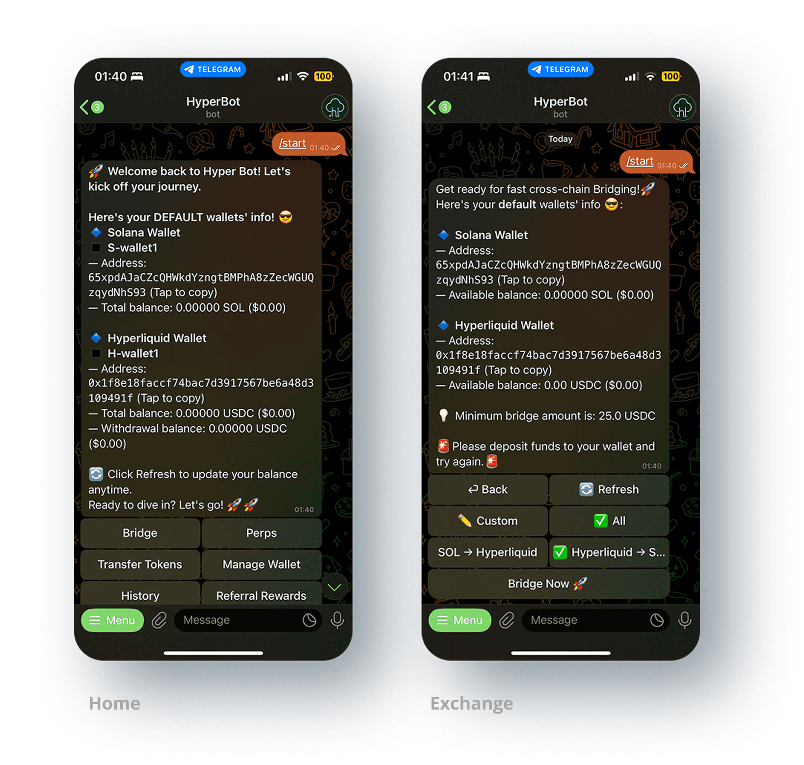 This project aimed to enable cross-network crypto trading through a Telegram-based bot, as users found it difficult and time-consuming to transfer coins between different networks like Solana and Hyper, and needed a more convenient way to trade seamlessly.